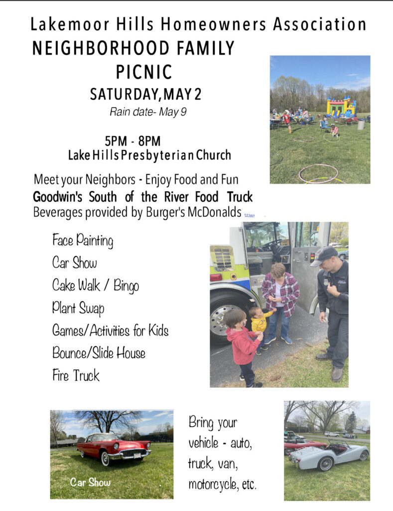This Saturday is the annual Lakemoor Hills Neighborhood Family Picnic! Welcome All!
